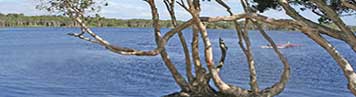 This sandy area along the banks of North Creek offers a refreshing swimming area and, with its large areas of shallows, is a favourite family area.