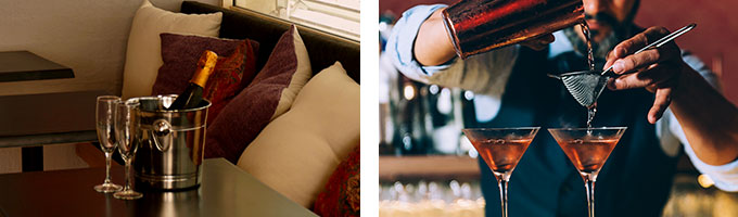 The adjacent Wine Bar is open to the public from 5.30pm Monday to Saturday and is a great place to enjoy pre dinner drinks and then when you are ready stroll into the restaurant for dinner, or if you're too comfortable to move, stay where you are and order from the a-la-carte restaurant menu and we will bring your meal to you.